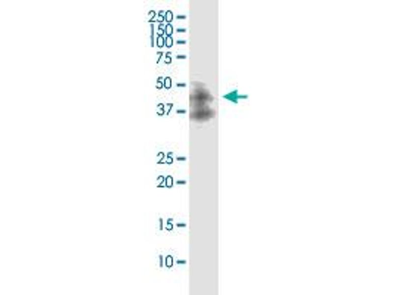 DAPK2 (AAC35001, 281 a.a. ~ 370 a.a) partial recombinant protein with GST tag. MW of the GST tag alone is 26 KDa.