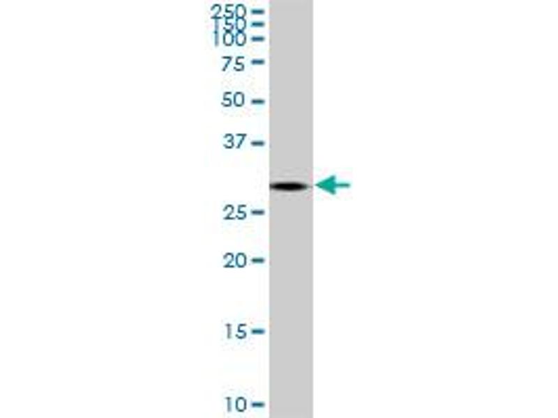 TGIF2 (NP_068581, 131 a.a. ~ 236 a.a) partial recombinant protein with GST tag. MW of the GST tag alone is 26 KDa.