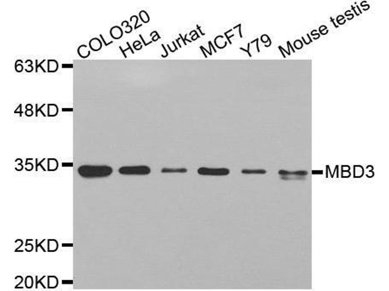 DNA methylation is the major modification of eukaryotic genomes and plays an essential role in mammalian development. This gene belongs to a family of nuclear proteins which are characterized by the presence of a methyl-CpG binding domain (MBD). The encoded protein is a subunit of the NuRD, a multisubunit complex containing nucleosome remodeling and histone deacetylase activities. Unlike the other family members, the encoded protein is not capable of binding to methylated DNA. The protein mediates the association of metastasis-associated protein 2 with the core histone deacetylase complex. Alternative splicing results in multiple transcript variants of this gene.,MBD3,Epigenetics & Nuclear Signaling,MBD3