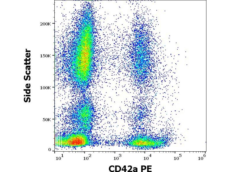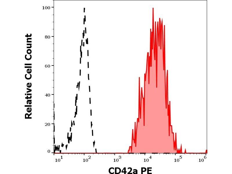 The mouse monoclonal antibody GR-P (also known as GRP-P) recognizes an extracellular epitope of CD42a (glycoprotein 9), a 22 kDa transmembrane protein constitutively expressed on megakaryocytes and platelets.
