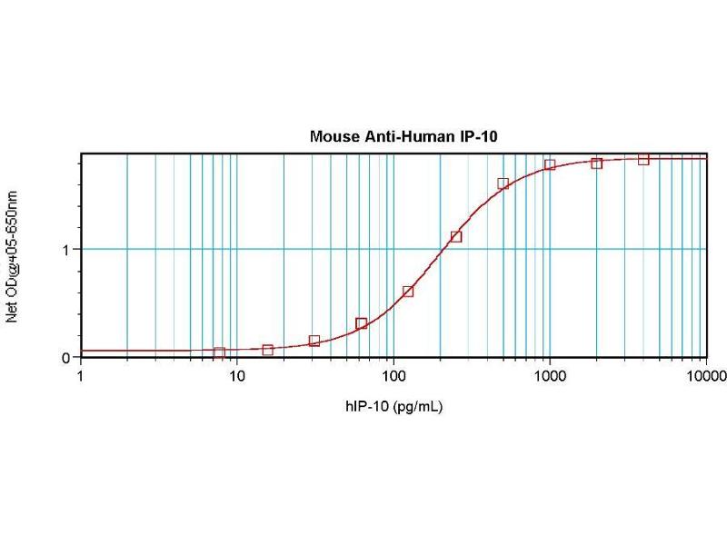 Chemokines are members of a superfamily of inducible, secreted, proinflammatory cytokines. Members of the chemokine family exhibit 20 % to 50 % homology in their predicted amino acid sequences and are divided into several subfamilies. The C-X-C chemokine subfamily includes IL-8, GROa/b/g (and the murine homologs KC, MIP-2a and MIP-2b), platelet basic protein, ENA-78, GCP-2, PF4, IP-10 (and its murine homolog, CRG) and MIG.Synonyms: 10 kDa interferon-gamma-induced protein, C-X-C motif chemokine 10, Gamma-IP10, INP10, SCYB10, Small-inducible cytokine B10
