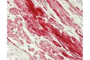 Desmin is a 53 kDa intermediate filament protein that exhibits a high degree of tissue specificity, its expression being predominantly confined to all types of muscle cells (cardiac, skeletal and smooth muscle). Regulation of desmin expression is stage and tissue-specific, since it is induced during terminal development. In skeletal en cardiac muscle cells desmin is localized in the Z-disk region and at the intercalated disk. The expression pattern of desmin in smooth muscle is much more heterogenous. Coexpression of vimentin and desmin has been observed in tumors derived from muscle tissue, i.e. rhabdomyosarcomas and leiomyosarcomas. Furthermore, during myocard dysfunction dramatic changes in the distribution of desmin have been observed.