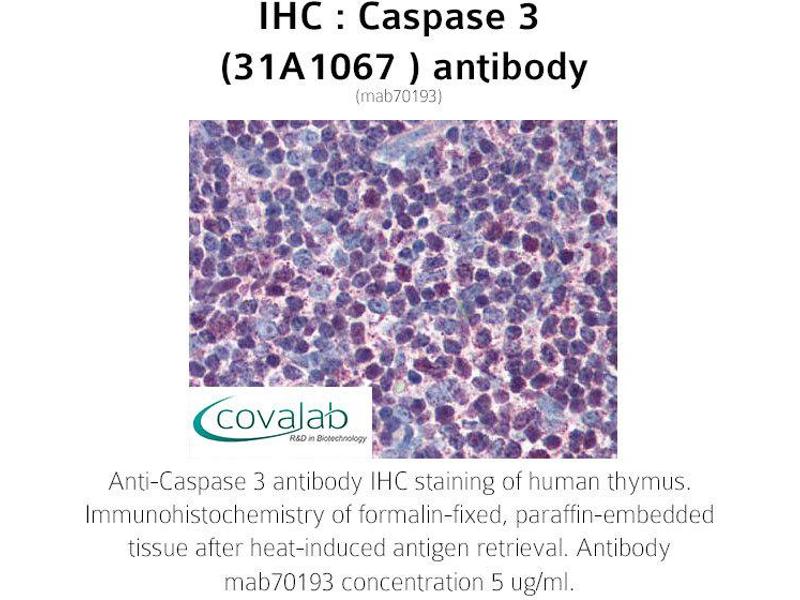 - Cross reacts with mouse protein. The antibody recognizes an epitope in the large domain subunit of Caspase-3. As such it will recognize pro Caspase-3 and the large subunit cleavage fragment.