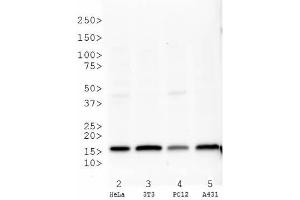 Immunogen: Histone H3 [Trimethyl Lys27] affinity purified antibody was prepared from whole rabbit serum produced by repeated immunizations with a synthetic peptide surrounding the K27me3 site of human Histone H3.