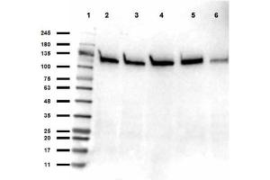 Application Note: This affinity purified antibody has been tested for use in ELISA and western blot. Specific conditions for reactivity should be optimized by the end user. Expect a band ~62 or 81.7 kDa in size corresponding to SIRT1 by western blotting in the appropriate cell lysate or extract. Higher observed band ~125 kda is due to complexing proteins.