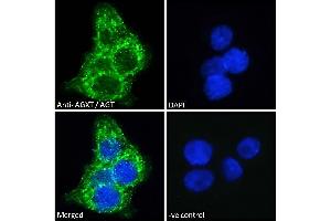 Immunofluorescence: Strong expression of the protein seen in the vesicles of HeLa and HepG2 cells. Recommended concentration: 10μg/ml.