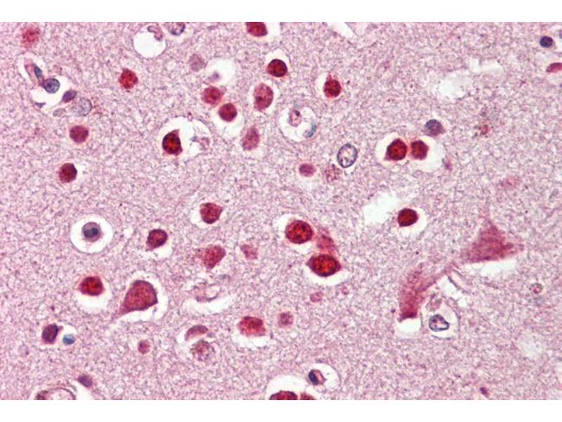 Immunohistochemistry: Paraffin embedded Human Brain (Cortex). Recommended concentration: 3.75 μg/mL.