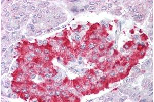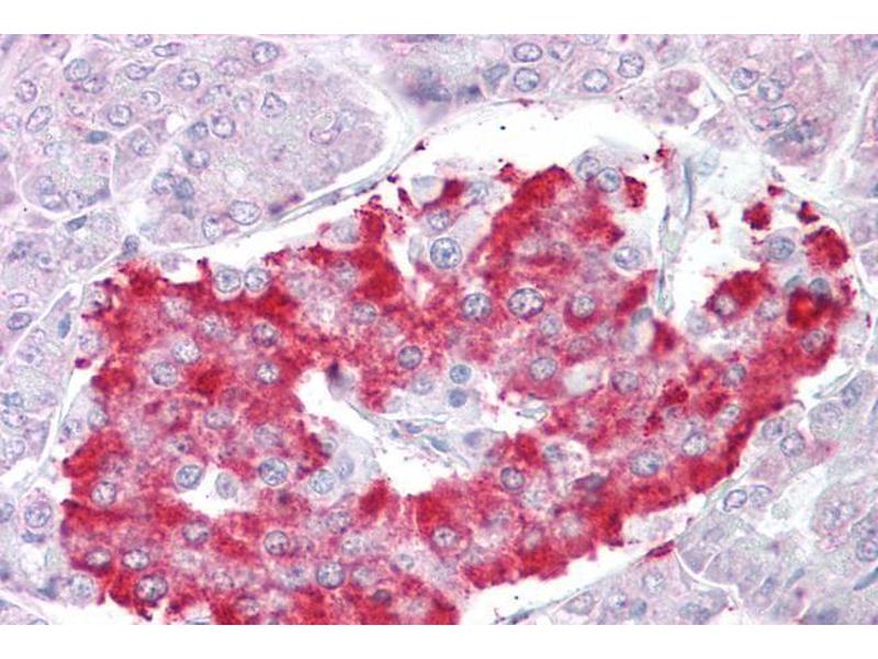 Immunohistochemistry: Paraffin embedded Human Pancreas. Recommended concentration: 2.5 μg/mL.