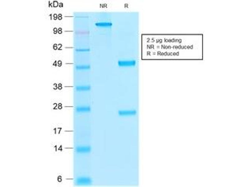 1. The prediluted format is supplied in a dropper bottle and is optimized for use in IHC. After epitope retrieval step (if required), drip mAb solution onto the tissue section and incubate at RT for 30 min.\. Western blot: 0.5-1 μg/mL,Immunohistochemistry (FFPE): 1-2 μg/mL for 30 min at RT,Prediluted IHC only format : incubate for 30 min at RT (1)