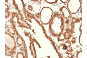 1. The prediluted format is supplied in a dropper bottle and is optimized for use in IHC. After epitope retrieval step (if required), drip mAb solution onto the tissue section and incubate at RT for 30 min.\. Immunohistochemistry (FFPE): 0.5-1 μg/mL for 30 min at RT,Prediluted IHC only format: incubate for 30 min at RT (1)