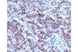 1. The prediluted format is supplied in a dropper bottle and is optimized for use in IHC. After epitope retrieval step (if required), drip mAb solution onto the tissue section and incubate at RT for 30 min.\. Immunohistochemistry (FFPE): 0.5-1 μg/mL for 30 min at RT,Prediluted IHC only format: incubate for 30 min at RT (1) -