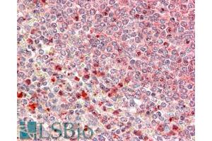 Immunohistochemistry: In paraffin embedded Spleen shows various types of subnuclear staining in select splenocytes and additional membrane plus cytoplasm staining elsewhere. Recommended concentration, 5-10 μg/mL.