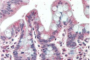 Immunohistochemistry: Paraffin embedded Human Small Intestine. Recommended concentration: 5 μg/mL.
