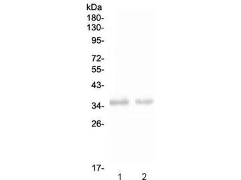 Optimal dilution of the NKp46 antibody should be determined by the researcher.\. Western blot: 0.5-1 μg/mL, IHC (FFPE): 1-2 μg/mL, Direct ELISA: 0.1-0.5 μg/mL