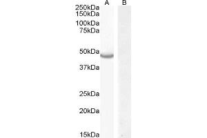 Western Blot: Approx 48 kDa band observed in lysates of cell line HepG2 (calculated MW of 47.9 kDa according to NP_001273014.1. Recommended concentration: 0.3-1 μg/mL. Primary incubation 1 hour at room temperature. Negative Control:CaCo-2