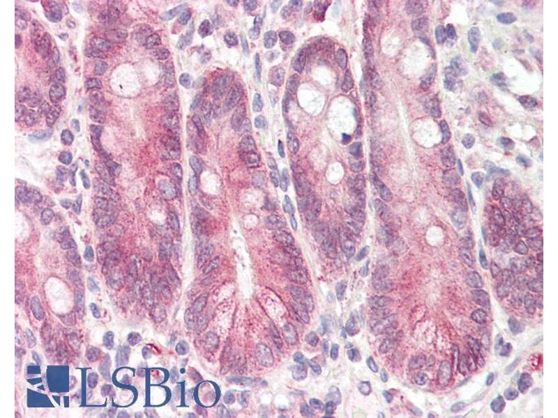 Immunohistochemistry: Paraffin embedded Human Small Intestine. Recommended concentration: 3.75 μg/mL.
