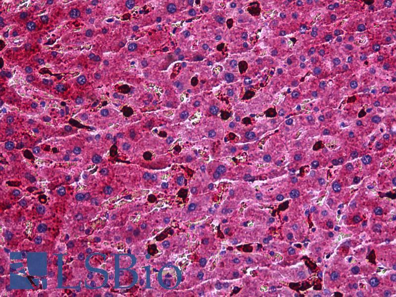Immunohistochemistry: Paraffin embedded Human Liver. Recommended concentration: 3.75 μg/mL.