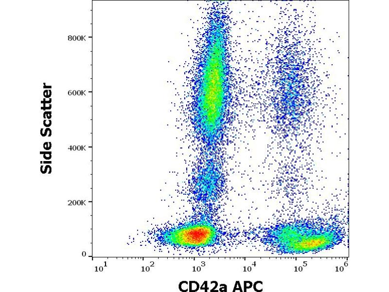 The mouse monoclonal antibody GR-P (also known as GRP-P) recognizes an extracellular epitope of CD42a (glycoprotein 9), a 22 kDa transmembrane protein constitutively expressed on megakaryocytes and platelets.