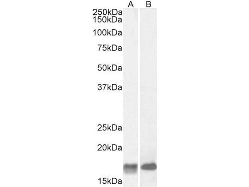 Western Blot: Approx 17 kDa band observed in Human Brain (Cerebellum) and in Mouse and Rat Brain lysates (calculated MW of 13.3 kDa according to Human NP_057057.2 and of 13.5 kDa according to Mouse NP_034383.1 and Rat NP_150240.1). Recommended concentration