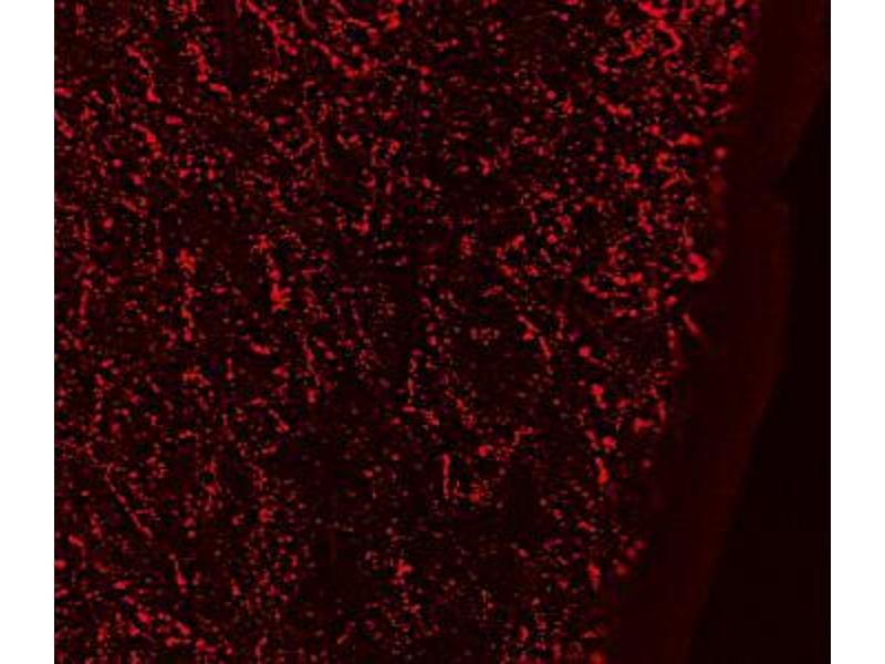Immunohistochemistry: Frozen section of Human Hypothalamus shows staining of galaninergic axons in the human periventricular nucleus. Recommended concentration: 0.2-0.5 μg/mL.