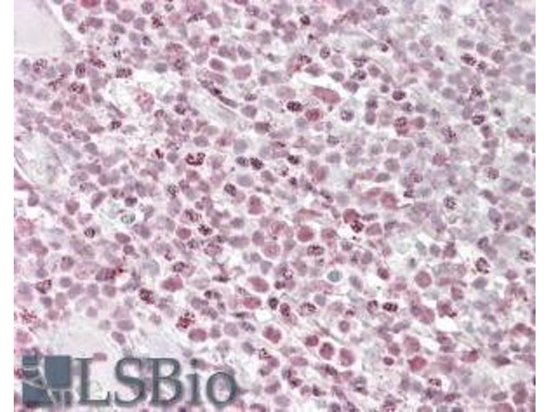 Immunohistochemistry: In paraffin embedded Human Tonsil shows textured staining in some nuclei of the lymphoid tissue. Recommended concentration: 2.5-3.8 μg/mL.