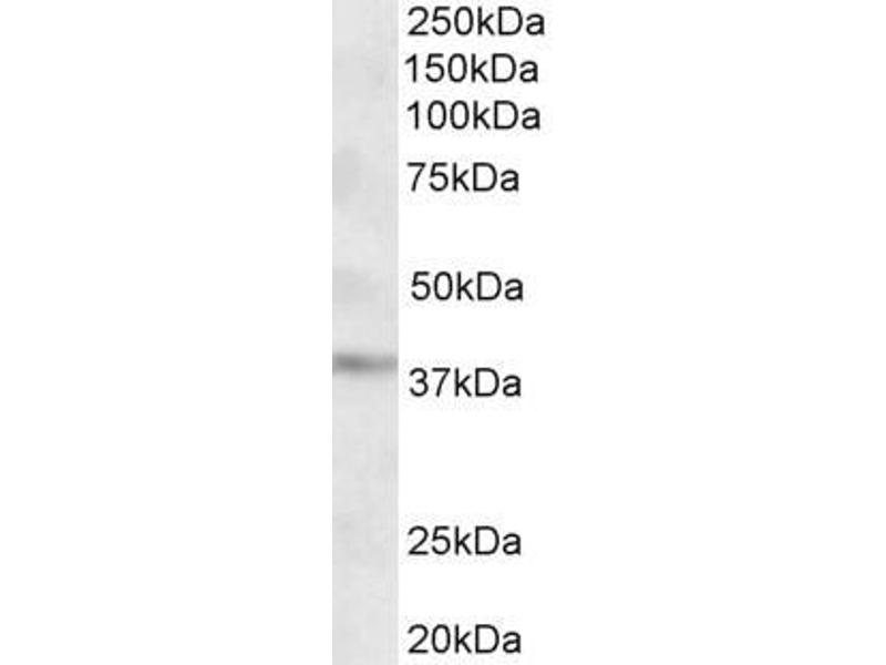 Western Blot: Approx 38 kDa band observed in Human Brain (Cerebral Cortex and Cerebellum) lysates (calculated MW of 37.2 kDa according to NP_055209.2). Recommended concentration: 1-3 μg/mL.