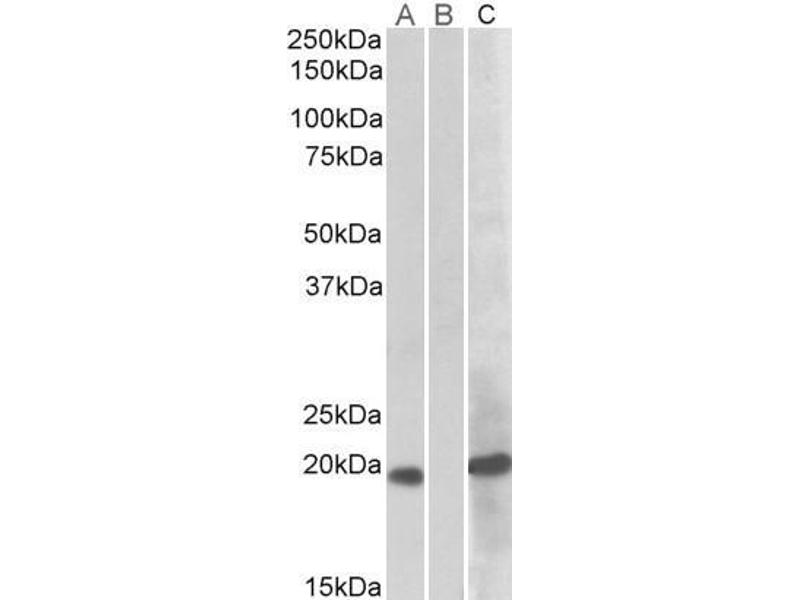 Western Blot: In transfected HEK293 transiently expressing Human HOXA1 (MYC and DYKDDDDK tagged), a band of approx. 19 kDa is observed. No bands are observed in mock-transfected HEK293 and the same band is observed using anti-MYC Tag antibody. Recommende