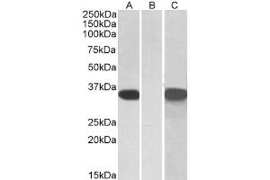 Western Blot: In transfected HEK293 transiently expressing Human CRISP2 (MYC and DYKDDDDK tagged), a band of approx. 35 kDa was observed. No bands were observed in mock-transfected HEK293 and the same band was observed using anti-myc tag antibody. Recomm