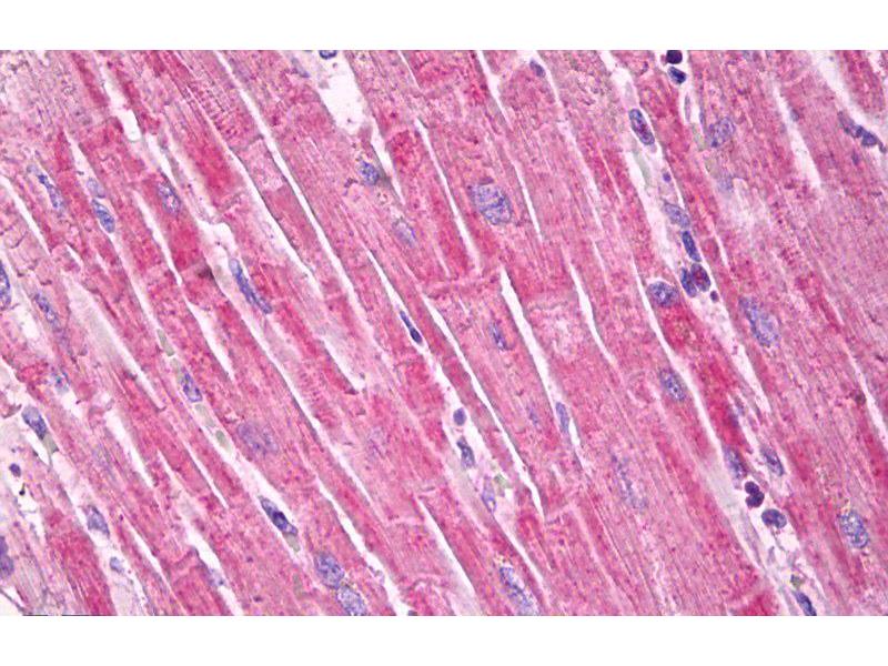 Immunohistochemistry: Paraffin embedded Human Heart. Recommended concentration: 5 μg/mL.