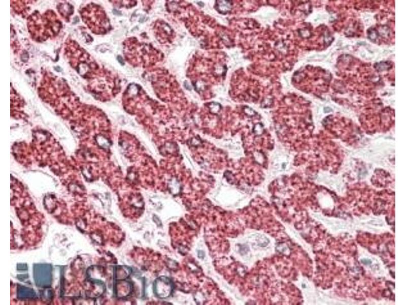 Immunohistochemistry: In paraffin embedded Human Liver shows mitochondrial staining in hepatocytes. Recommended concentration, 3-5 μg/mL.
