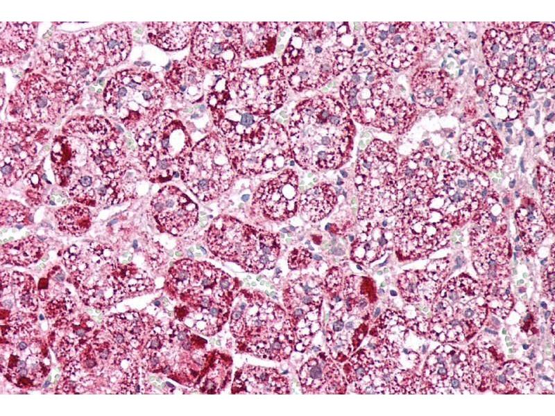 Immunohistochemistry: Paraffin embedded Human Adrenal Gland and Heart. Recommended concentration: 5 μg/mL.