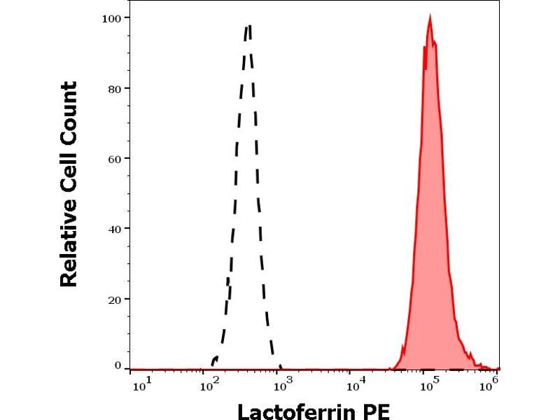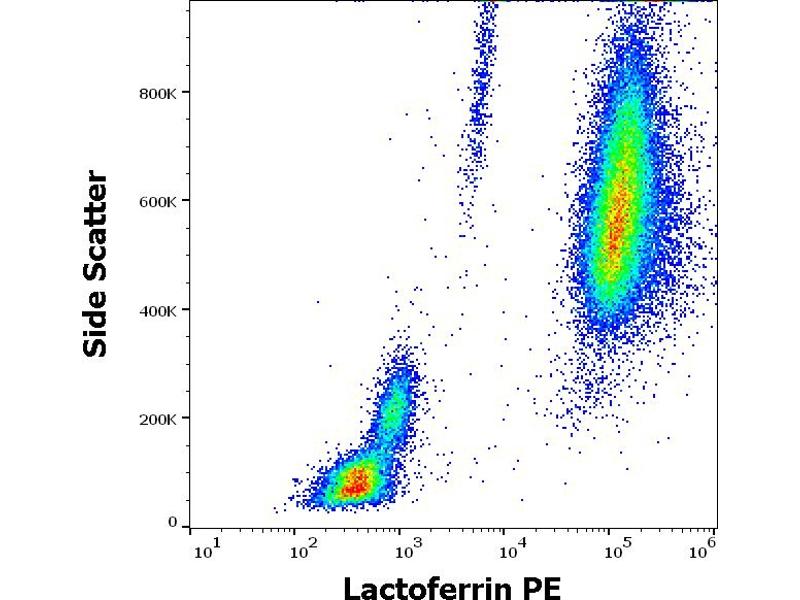 The mouse monoclonal antibody LF5-1D2 recognizes lactoferrin, an iron-binding secreted glycoprotein of about 90 kDa, which has anti-inflammatory, immunomodulatory and anti-microbial properties.