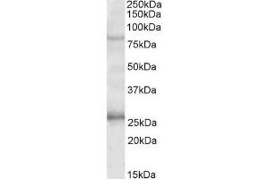 Western Blot: Approx 80 kDa band observed in Human Brain (Hippocampus) lysates (calculated MW of 82.4 kDa according to NP_938022.2). Recommended concentration: 1-3 μg/mL. An additional band of unknown identity was also consistently observed at 26 kDa. This b