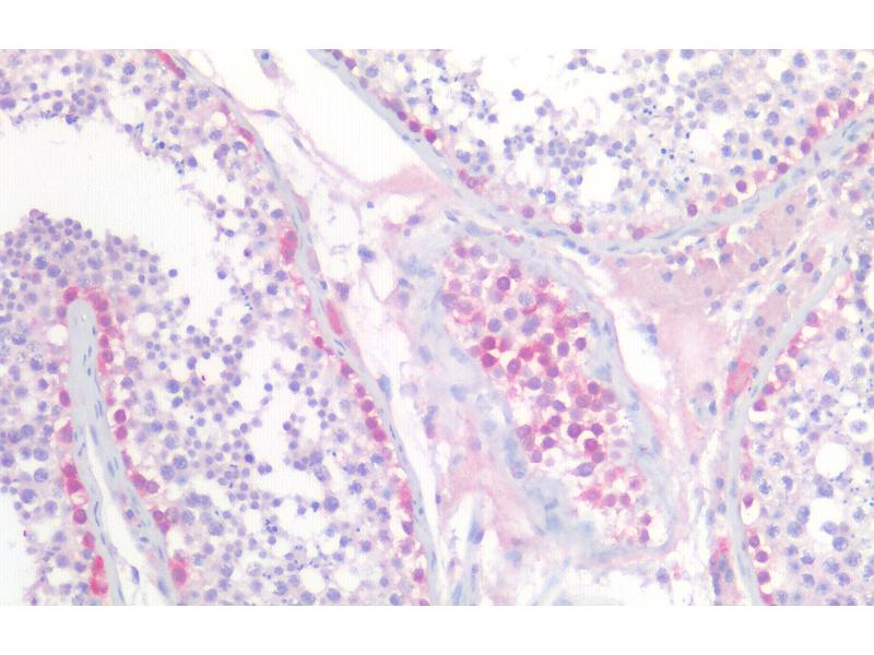 Immunohistochemistry: Paraffin embedded Human Testis. Recommended concentration: 5 μg/mL.