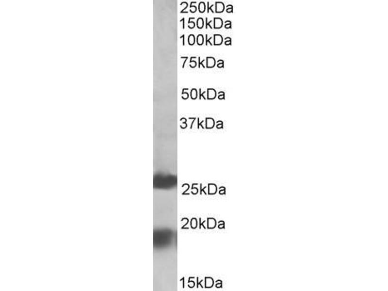 Western Blot: Approx 19 kDa band observed in Human Brain (Frontal Cortex) lysates (calculated MW of 19.7 kDa according to NP_002428.1). Recommended concentration: 1-3 μg/mL. An additional band of unknown identity was also consistently observed at 26 kDa. Thi