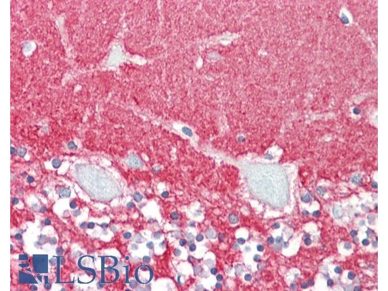 Immunohistochemistry: Paraffin embedded Human Brain (Cerebellum). Recommended concentration: 3.75 μg/mL.