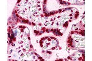 Usage: Western Blot (Cell lysate) - positive control Hela NE. Immunofluorescence (10 μg/mL) - positive control HeLa cells. Sandwich ELISA (Recombinant protein). -