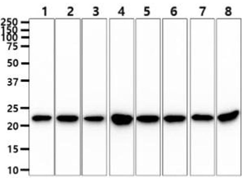 Phosphatidylethanolamine binding protein 1 (PEBP1), also known as Raf kinase inhibitor protein (RKIP), is a member of the phosphatidylethanolamine-binding protein family and a serine protease inhibitor which inhibits thrombin, neuropsin. PEBP1 plays a pivotal modulatory role in several protein kinase signaling cascades. Protein kinase C (PKC) phosphorylates PEBP1, resulting in release of Raf-1 and activation of MEK and ERK. Expressed in many tissues, PEBP1 is implicated in the regulation of such physiological processes as membrane biosynthesis, spermatogenesis, neural development, and metastasis suppression.