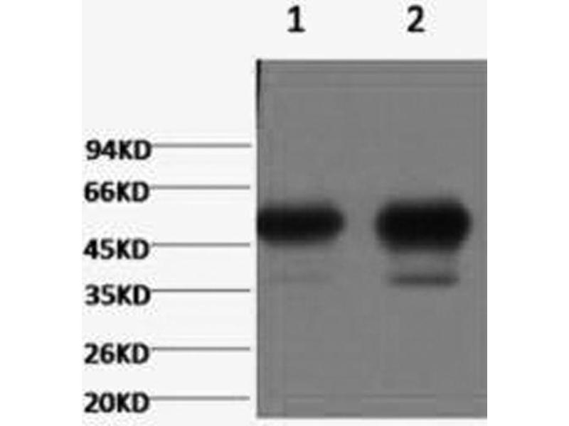 There are five tubulins in human cells: alpha, beta, gamma, delta, and epsilon. Tubulins are conserved across species. They form heterodimers, which multimerize to form a microtubule filament. An alpha and beta tubulin heterodimer is the basic structural unit of microtubules. The heterodimer does not come apart, once formed. The alpha and beta tubulins, which are each about 55 kDa MW, are homologous but not identical. Alpha, beta, and gamma tubulins have all been used as loading controls. Tubulin expression may vary according to resistance to antimicrobial and antimitotic drugs.
