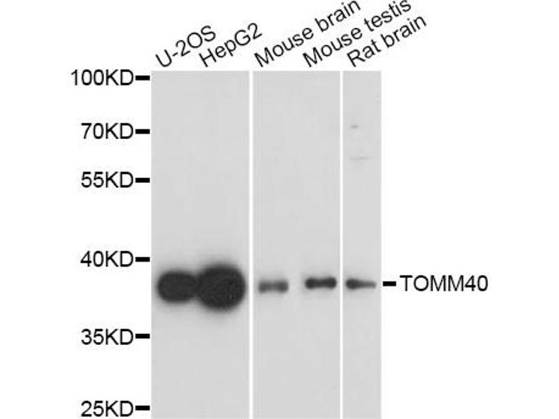 The Rabbit Polyclonal anti-TOMM40 antibody (ABIN2974774) specifically detects TOMM40 in WB.