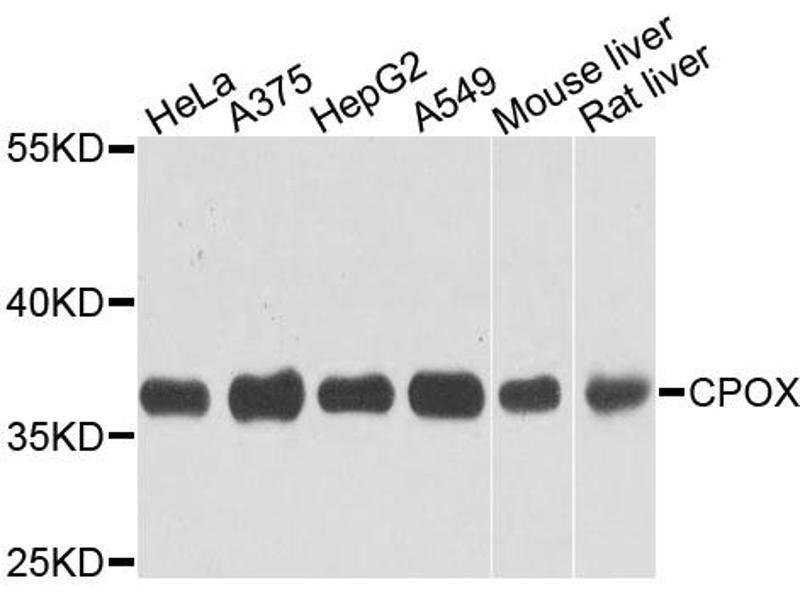 The Rabbit Polyclonal anti-CPOX antibody has been validated for WB and IHC. It is suitable to detect CPOX in samples from Human, Mouse and Rat.