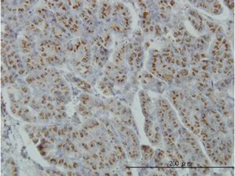 Usage: Immunohistochemistry: Formalin-fixed paraffin-embedded sections. Sandwich ELISA: Recombinant protein. Western Blot: Cell lysate, Recombinant protein. -