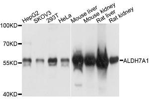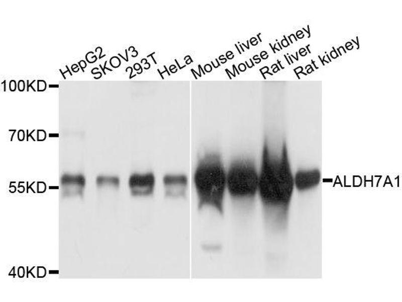 The Rabbit Polyclonal anti-ALDH7A1 antibody (ABIN3060245) specifically detects ALDH7A1 in WB.