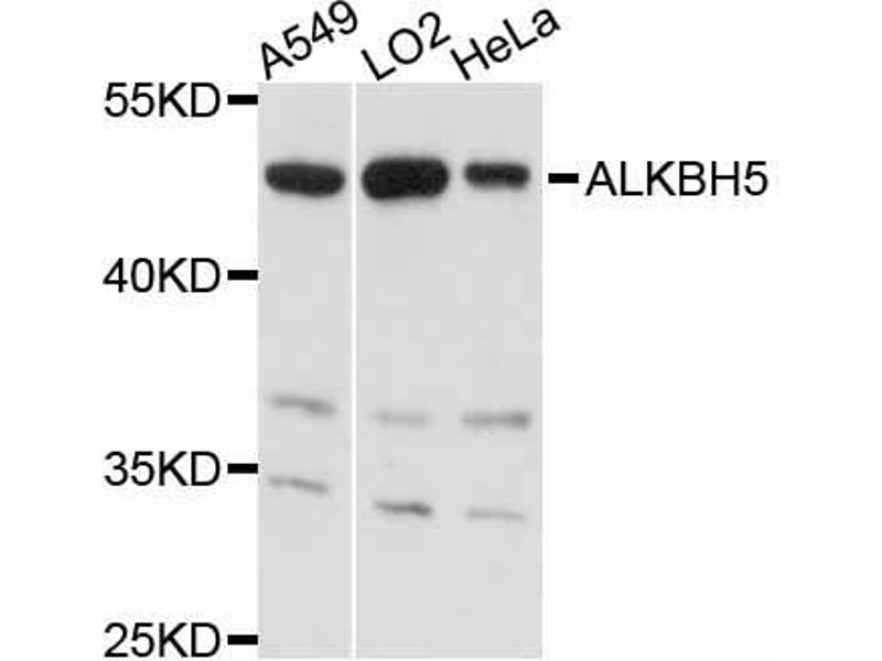 This anti-ALKBH5 antibody is a Rabbit Polyclonal antibody detecting ALKBH5 in WB. Suitable for Human.