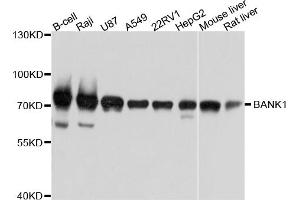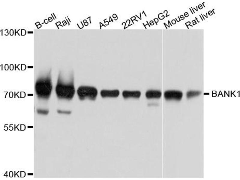 This Rabbit Polyclonal antibody specifically detects BANK1 in WB. It exhibits reactivity toward Human, Mouse and Rat.