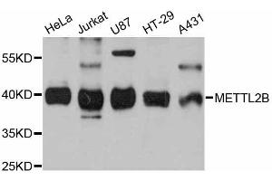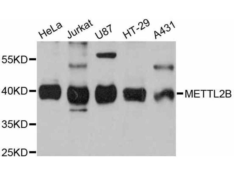 The Rabbit Polyclonal anti-METTL2B antibody has been validated for WB. It is suitable to detect METTL2B in samples from Human.