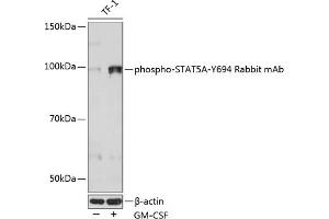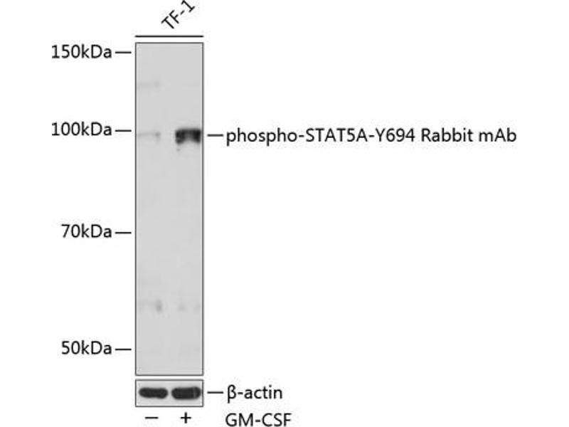 The protein encoded by this gene is a member of the STAT family of transcription factors. In response to cytokines and growth factors, STAT family members are phosphorylated by the receptor associated kinases, and then form homo- or heterodimers that translocate to the cell nucleus where they act as transcription activators. This protein is activated by, and mediates the responses of many cell ligands, such as IL2, IL3, IL7 GM-CSF, erythropoietin, thrombopoietin, and different growth hormones. Activation of this protein in myeloma and lymphoma associated with a TEL/JAK2 gene fusion is independent of cell stimulus and has been shown to be essential for tumorigenesis. The mouse counterpart of this gene is found to induce the expression of BCL2L1/BCL-X(L), which suggests the antiapoptotic function of this gene in cells. Alternatively spliced transcript variants have been found for this gene. [provided by RefSeq, Dec 2013],MGF,STAT5,STAT5A,Apoptosis,Cell Biology & Developmental Biology,Epigenetics & Nuclear Signaling,ErbB-HER Signaling Pathway,IL-6 Receptor Signaling Pathway,Immunology & Inflammation,Protein phosphorylation,Signal Transduction,Stem Cells,Transcription Factors,STAT5A