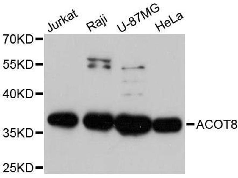 - Recombinant fusion protein containing a sequence corresponding to amino acids 1-220 of human ACOT8 (NP_005460.2).