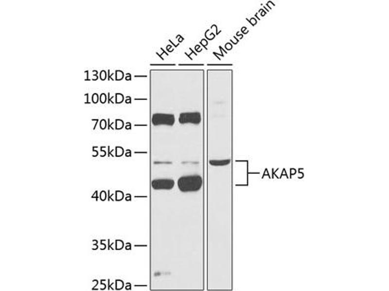 The A-kinase anchor proteins (AKAPs) are a group of structurally diverse proteins, which have the common function of binding to the regulatory subunit of protein kinase A (PKA) and confining the holoenzyme to discrete locations within the cell. This gene encodes a member of the AKAP family. The encoded protein binds to the RII-beta regulatory subunit of PKA, and also to protein kinase C and the phosphatase calcineurin. It is predominantly expressed in cerebral cortex and may anchor the PKA protein at postsynaptic densities (PSD) and be involved in the regulation of postsynaptic events. It is also expressed in T lymphocytes and may function to inhibit interleukin-2 transcription by disrupting calcineurin-dependent dephosphorylation of NFAT.,AKAP5,AKAP75,AKAP79,H21,Signal Transduction,G protein signaling,G-Protein-Coupled Receptors(GPCR),Kinase,Neuroscience,Calcium Signaling,AKAP5