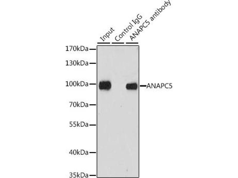 - This gene encodes a tetratricopeptide repeat-containing component of the anaphase promoting complex/cyclosome (APC/C), a large E3 ubiquitin ligase that controls cell cycle progression by targeting a number of cell cycle regulators such as B-type cyclins for 26S proteasome-mediated degradation through ubiquitination. The encoded protein is required for the proper ubiquitination function of APC/C and for the interaction of APC/C with transcription coactivators. It also interacts with polyA binding protein and represses internal ribosome entry site-mediated translation. Multiple transcript variants encoding different isoforms have been found for this gene. These differences cause translation initiation at a downstream AUG and result in a shorter protein (isoform b), compared to isoform a.,ANAPC5,APC5,Cell Biology & Developmental Biology,Cell Cycle,Ubiquitin,Ubiquitin-Proteasome Signaling Pathway,ANAPC5